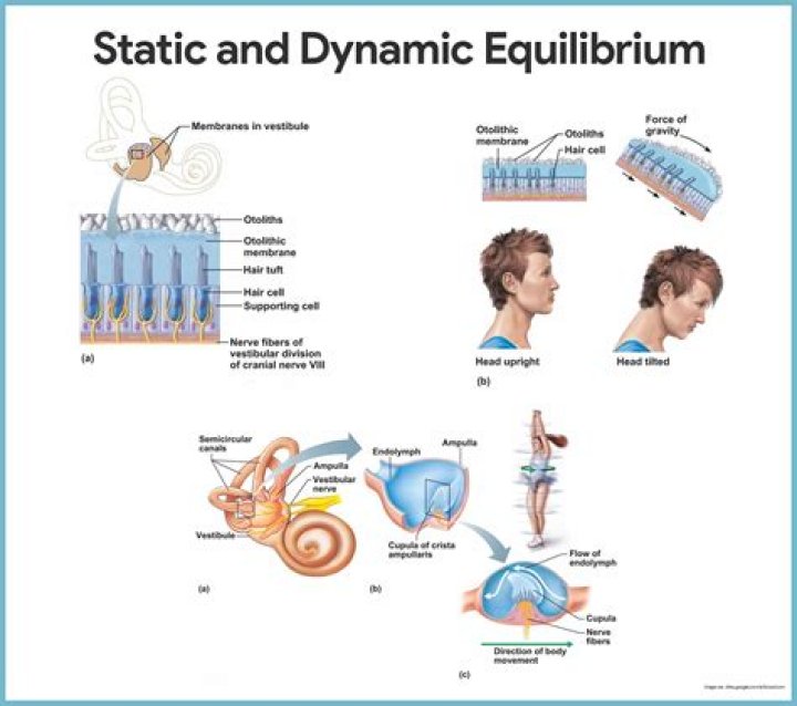 There are two types of equilibrium: static (gravitational) equilibrium, which involves the movement of the head with respect to gravity and dynamic (rotational) equilibrium, which involves acceleration of the head in rotation, horizontal, and vertical movements.