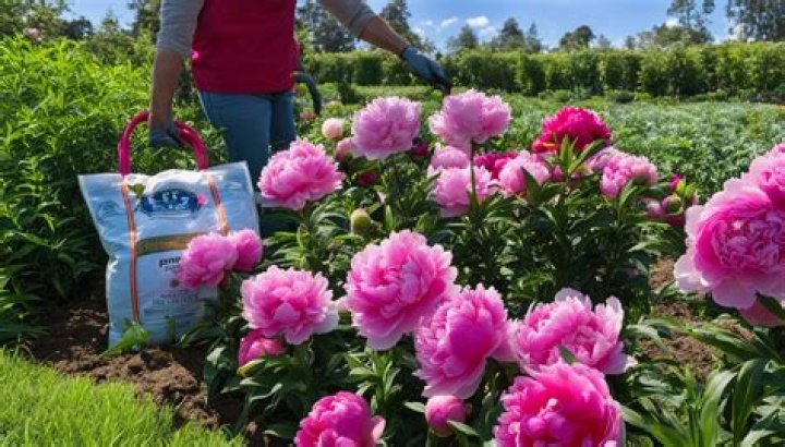 Established peonies benefit from an application of bone meal. Bone meal is crushed animal bones used as fertilizer for a diverse array of plants. Fertilize peonies twice a year; first in the spring when the stems are 2 to 3 inches high and again in the late summer after blooming.