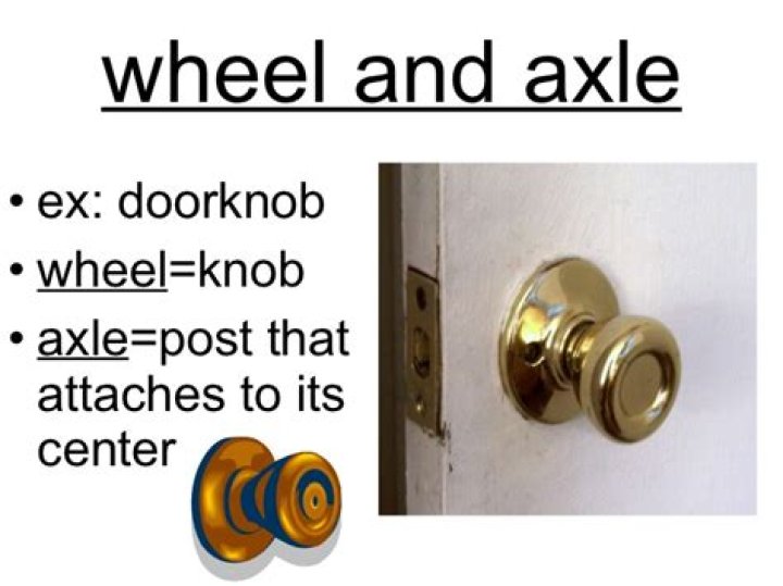 A door knob or door handle is used to open or close the door easily. A wheel and axle is a simple machine in which the axle attaches the object to the wheel. A door knob has an axle in the middle with a wheel. Therefore, a doorknob is an example of a simple machine and not a screw.