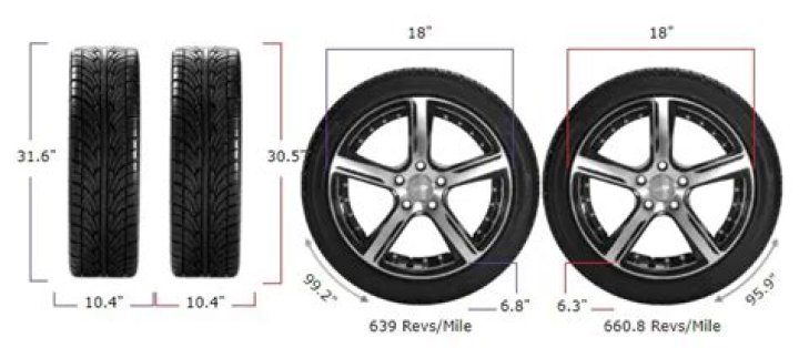 285/55R18 tires have a diameter of 30.3″, a section width of 11.2″, and a wheel diameter of 18″. The circumference is 95.3″ and they have 665 revolutions per mile.