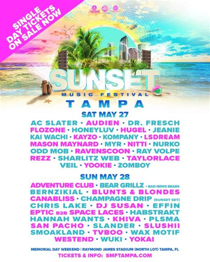 It will be a good year with a Sunset Music Festival 2021 lineup that includes Rezz, LSDream, NGHTMRE, Slander, Zomboy and more. Green Velvet, Inzo, Jack Beats, Midnight Tyrannosaurus and Riot Ten are the latest names to be added. See the full Sunset Music Festival lineup below.
