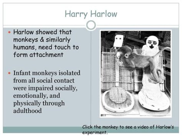 Harlow (1958) separated infant monkeys from their mothers immediately after birth and placed in cages with access to two surrogate mothers, one made of wire and one covered in soft terry toweling cloth.