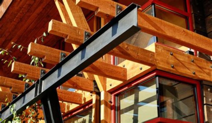 An overhanging beam is used where it is not practical to provide a support to the beam at one end. You will frequently encounter overhanging beams in a floor beam which extends beyond the exterior wall of a building to support a balcony. It is also used to support roof extensions as in the picture below.