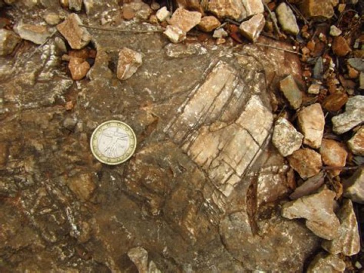Calcite most commonly occurs in sedimentary settings, particularly in shallow marine settings as the shells and hard parts of marine organisms. It is also found in hydrothermal veins and hot spring deposits.