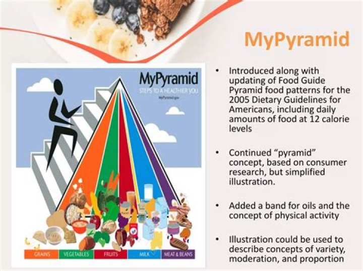 MyPyramid is designed to be a simple reminder to consumers to make healthy food choices and to be active every day. MyPyramid emphasizes activity, proportionality, moderation, variety, personalization, and gradual improvement. saturated fat and cholesterol and moderate in total fat. to moderate your intake of sugars.