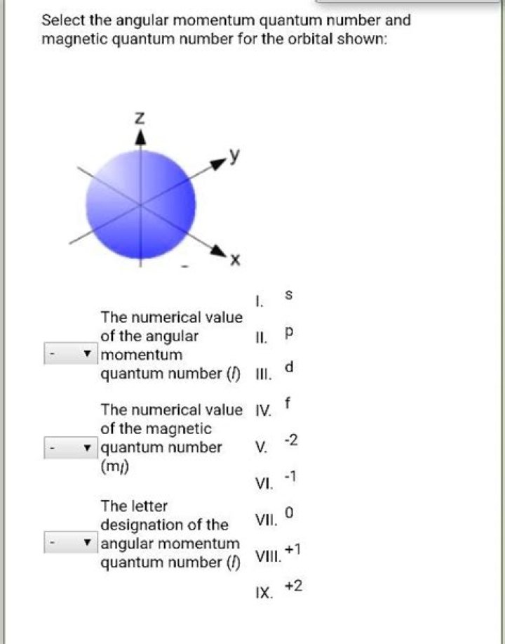 The angular momentum quantum number, l, (also referred to as the secondary quantum number or azimuthal quantum number) describes the shape of the orbital that an electron occupies. The lowest possible value of l is 0, and its highest possible value, depending on the principal quantum number, is n – 1.