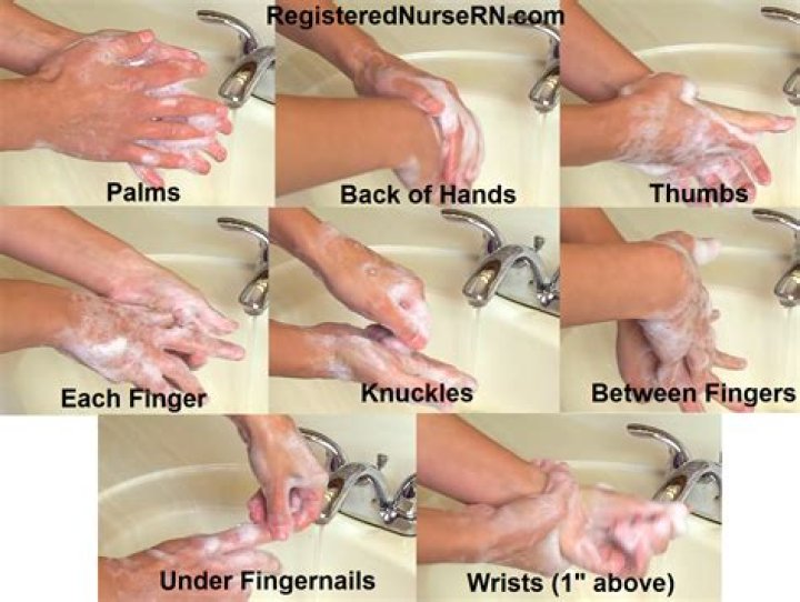Step #1: Wet your hands with warm water. Step #2: Apply soap. Step #3: Ruk your hands together, and even get between those fingers for 20 seconds. Step #6: Dry your hands.