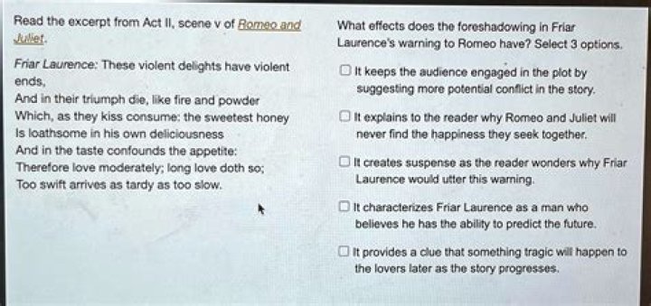 What is the purpose of the prologue of Romeo and Juliet select 3 options?