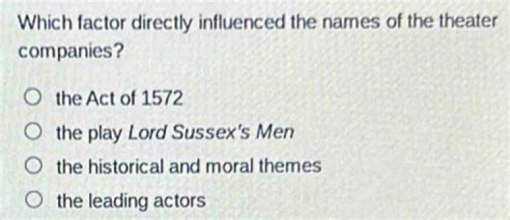 Which factor directly influenced the names of the theater companies the Act of 1572?