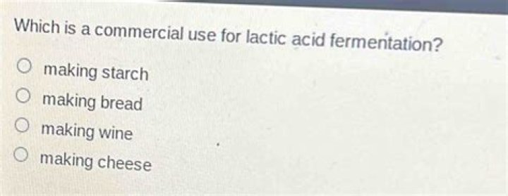 Which is a commercial use for lactic acid fermentation a making starch B making bread C making wine d making cheese?