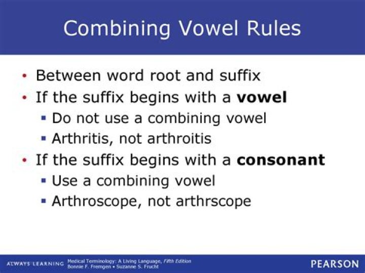 The letter 鈥渙鈥 is the most commonly used combining vowel, and under certain conditions, this is added to make the resulting medical term easier to pronounce. The rules for the use of a combining vowel are: 鈻 When two word roots are joined, a combining vowel is always added to the first word root.