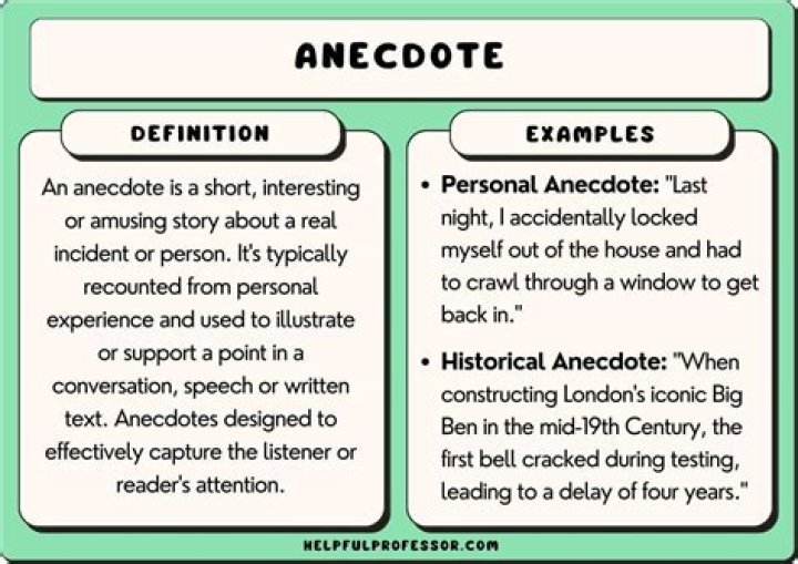 Generally, the anecdote will relate to the subject matter that the group of people is discussing. For example, if a group of coworkers are discussing pets, and one coworker tells a story about how her cat comes downstairs at only a certain time of the night, then that one coworker has just told an anecdote.