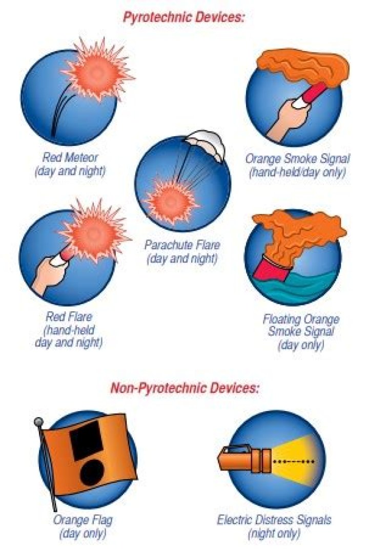 Federal regulations require that all pyrotechnic distress signals be Coast Guard approved, in good condition, unexpired and readily accessible in case of an emergency.