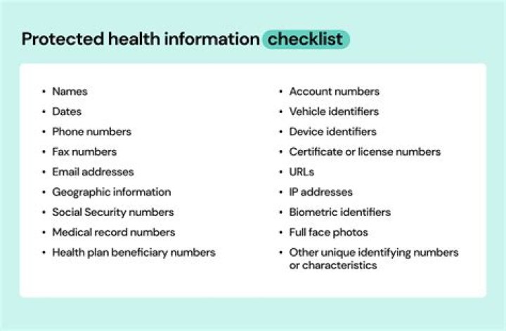 Dates — Including birth, discharge, admittance, and death dates. Biometric identifiers — including finger and voice prints. Full face photographic images and any comparable images.