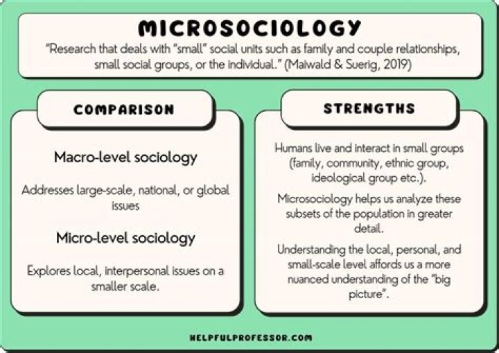 Key Points. Macro-level sociology looks at large-scale social processes, such as social stability and change. Micro-level sociology looks at small-scale interactions between individuals, such as conversation or group dynamics. Micro- and macro-level studies each have their own benefits and drawbacks.