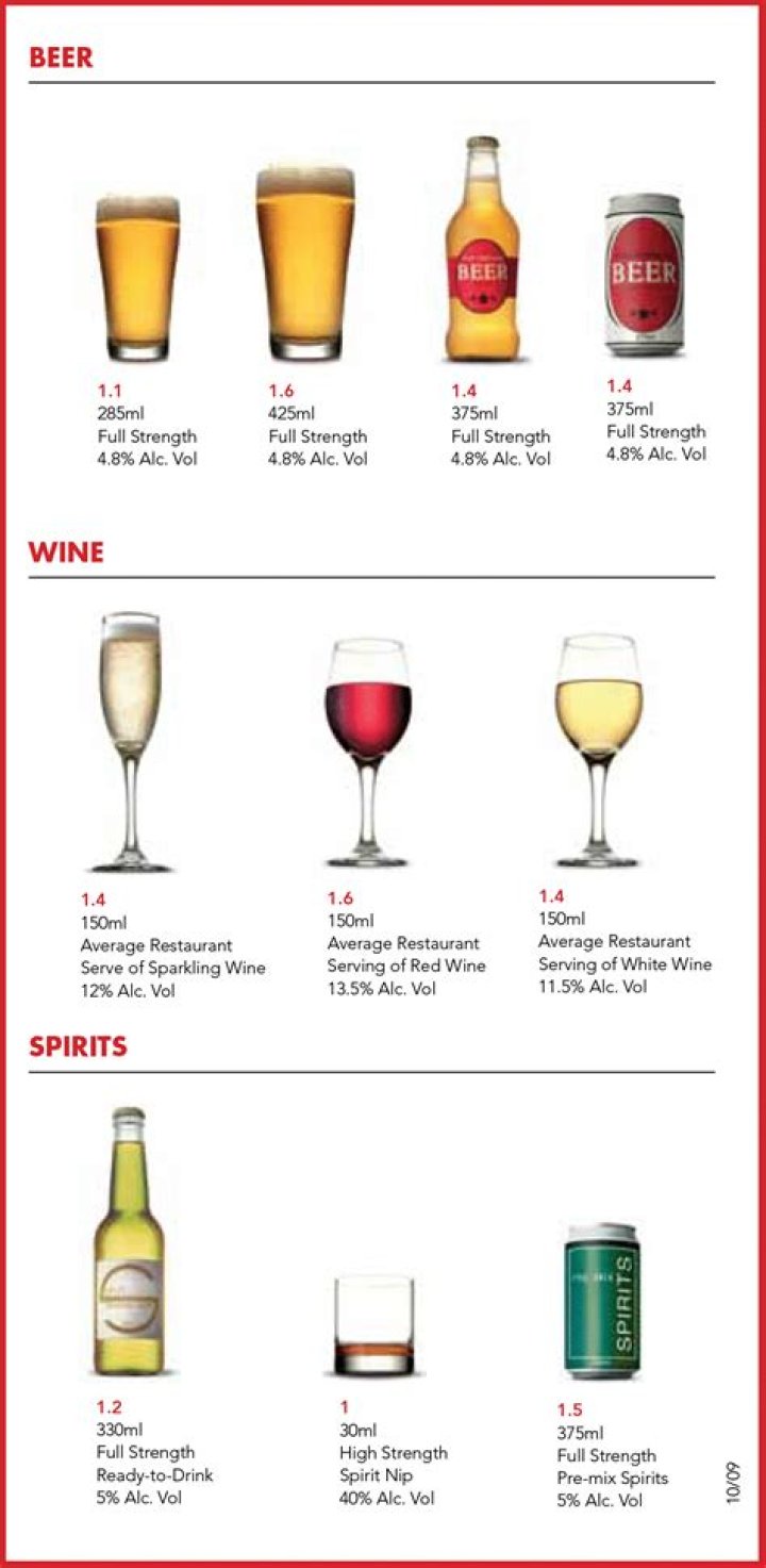 Explanation A five-ounce glass of wine (12 percent alcohol), a 12-ounce can or bottle of beer, and 1.5 ounces of 86-proof liquor all contain approximately the same amount of alcohol. A person’s ability to drive will be equally impaired by the same amount of alcohol no matter what kind of alcoholic beverage they drink.