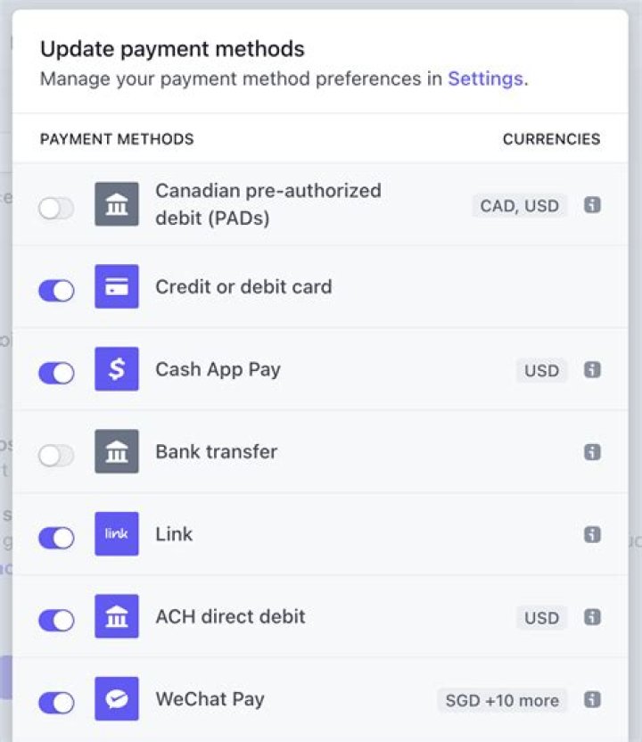 Here are the various types of payment methods to choose from.