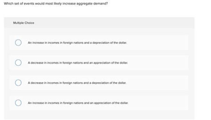 Which combination of factors would most likely increase aggregate demand? An increase in consumer wealth and a decrease in interest rates.