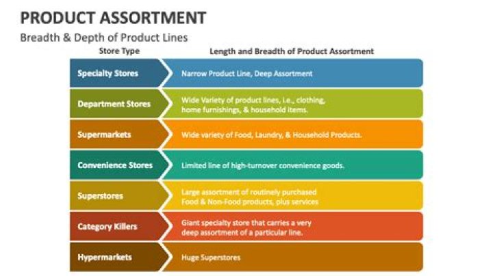 A deep assortment—the opposite of a narrow assortment—of products means that a retailer carries a number of variations of a single product. A wide variety—the opposite of a narrow variety—of products means that a retailer carries a large number of different kinds of products.