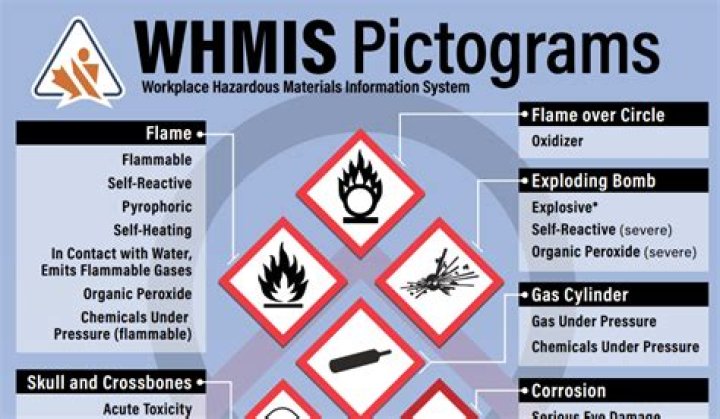 WHMIS (Workplace Hazardous Materials Information System) helps identify the hazards of products like chemical and infectious agents. Inside this border is a symbol that represents the potential hazard (e.g., fire, health hazard, corrosive, etc.). Together, the symbol and the border are referred to as a pictogram.