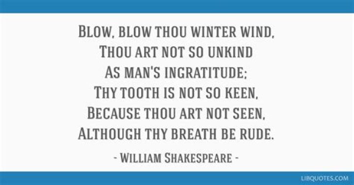 Blow, blow, thou winter wind. This poem, from Act II Scene 7 of Shakespeare’s As You Like it, is a very popular setting for musical compositions.
