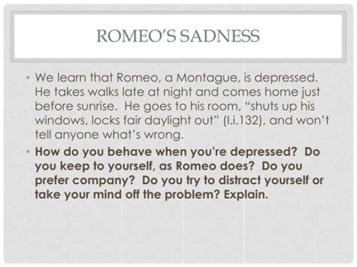 Romeo is sad at the start of the play. He is sad at this point because he is in “love” with Rosaline. The problem is that she does not love him in return and so he is going around moping because of this. Much later in the play, he is sad (beyond sad, really) because he believes that Juliet is dead.
