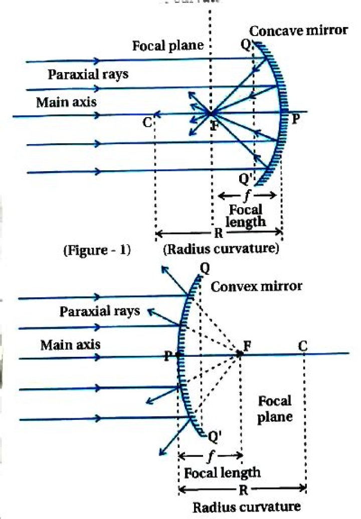 (b) Radius of curvature (R) – It is the radius of the sphere from which the mirror is formed.